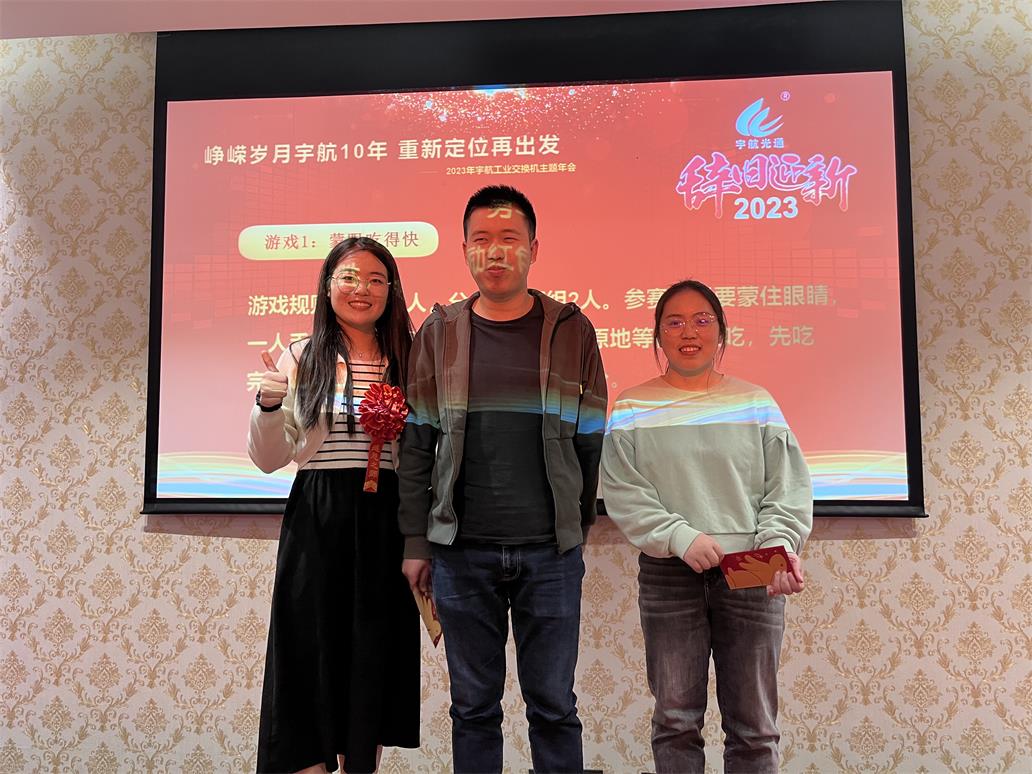 7日17:00整,2023宇航工業交換機主題年會正式開始,時長四個小時,整個過程有夢想,有感動,有感恩,有頒獎,有游戲,有抽獎,整個現場熱火朝天,掌聲雷動。