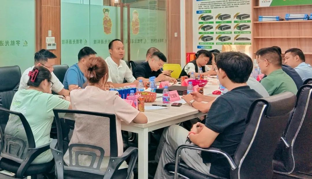 第二天上午,產品經理柳工為大家進行產品知識培訓。隨著工業通信時代的快速發展,為滿足市場需求,宇航推出了一系列新產品。寬溫系列、“清涼一價”等新品一上市,前來咨詢的客戶就源源不斷。基于此,柳工針對新產品的設計和用途給大家進行了培訓,大家紛紛認可,全體成員認真學習、積極互動,相互啟發、相互促進、共同進步,交流學習達到了良好的效果。