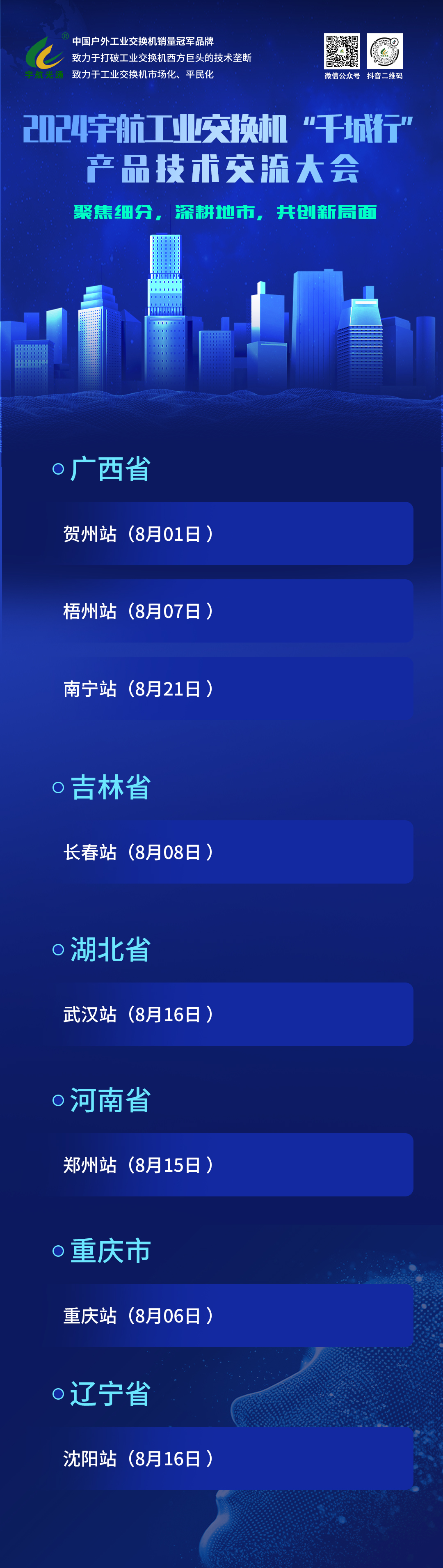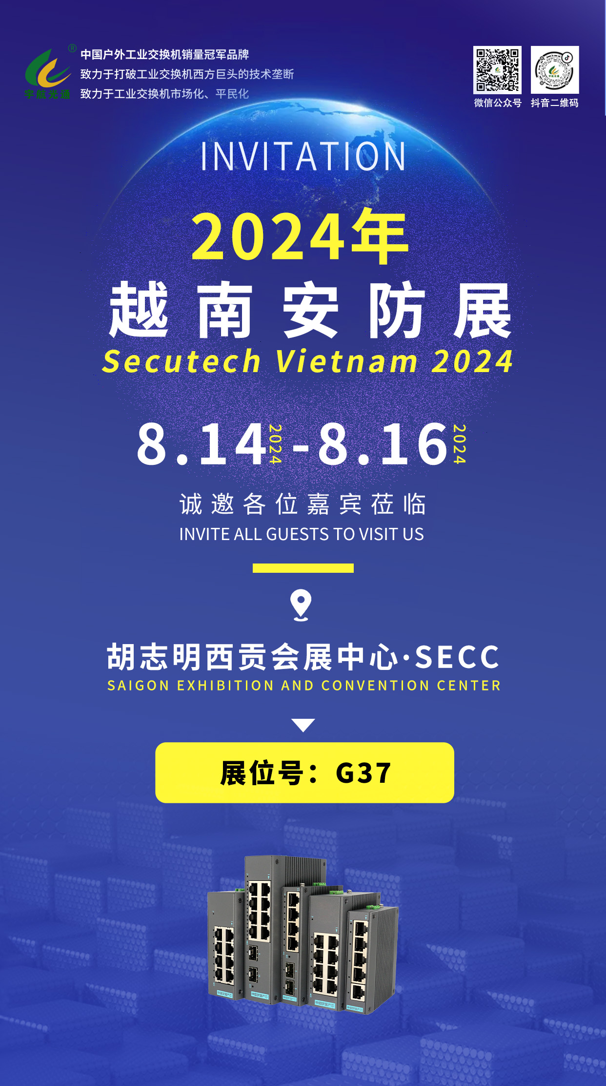 八月,宇航工業(yè)交換機(jī)將亮相國內(nèi)外多場展會(山東泰安、新疆及越南),并在廣西賀州、梧州、南寧,吉林長春,遼寧沈陽,湖北武漢,河南鄭州,重慶等城市舉辦“2024宇航工業(yè)交換機(jī)千城行產(chǎn)品技術(shù)交流大會”,深度探討行業(yè)解決方案。此外,還特別受邀參與河南鄭州、陜西西安等地的“百城會-智慧安防技術(shù)交流會”,共謀安防新未來。宇航工業(yè)交換機(jī)誠摯邀請各界精英蒞臨現(xiàn)場,參觀指導(dǎo),攜手共創(chuàng)新篇章!