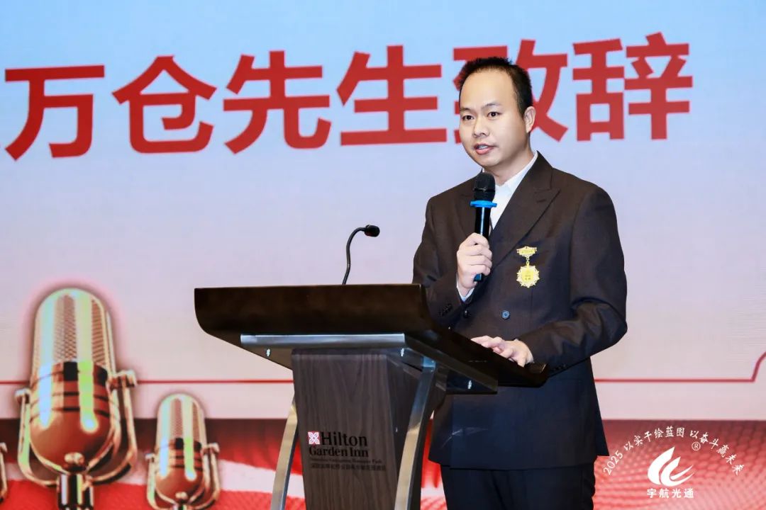 致辭環(huán)節(jié)伊始,首先邀請(qǐng)的是宇航工業(yè)交換機(jī)董事長張萬倉先生上臺(tái)。張總首先對(duì)過去一年里公司所取得的成績表示了肯定,并對(duì)公司全體員工的辛勤付出表達(dá)了深深的感謝。張總表示,2024年是公司發(fā)展歷程中極具挑戰(zhàn)和困難的一年,在全體員工的共同努力下,公司不僅在市場份額上實(shí)現(xiàn)了穩(wěn)步增長,更在技術(shù)創(chuàng)新和品牌建設(shè)方面取得了顯著成就。