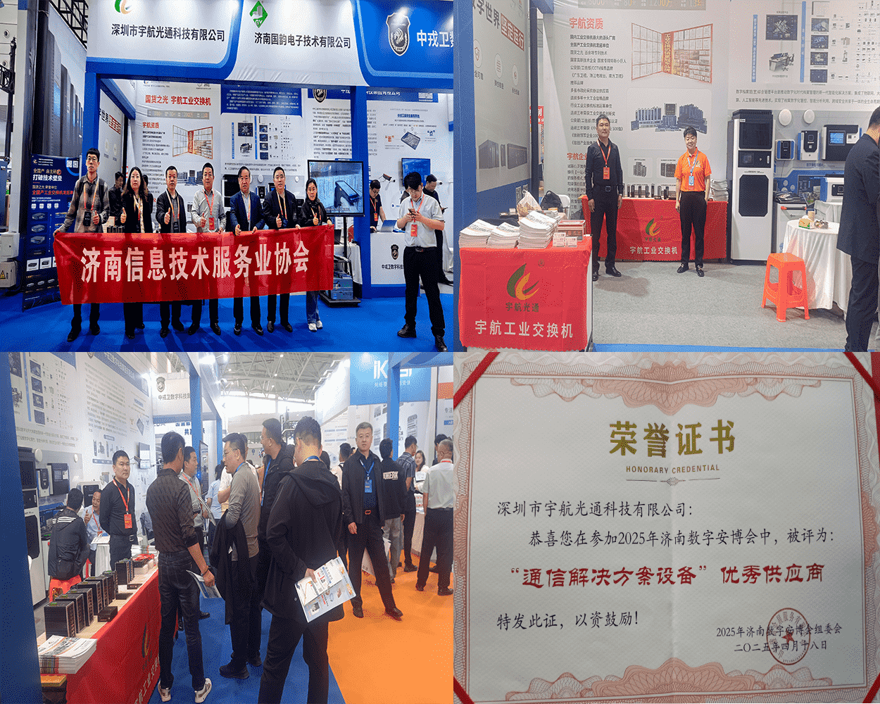此次系列展會中,宇航工業(yè)交換機展示了最新一代國產(chǎn)化工業(yè)通信解決方案,吸引眾多行業(yè)用戶駐足交流。各地參展觀眾對宇航自主研發(fā)的全系列工業(yè)級交換設備給予高度評價,尤其對宇航工業(yè)交換機在惡劣環(huán)境下的穩(wěn)定性能和信創(chuàng)領域的技術突破表示贊賞。在濟南數(shù)字安防產(chǎn)業(yè)博覽會上,宇航憑借其自主創(chuàng)新的國產(chǎn)通信技術體系,榮膺大會"通信解決方案設備優(yōu)秀供應商"稱號。