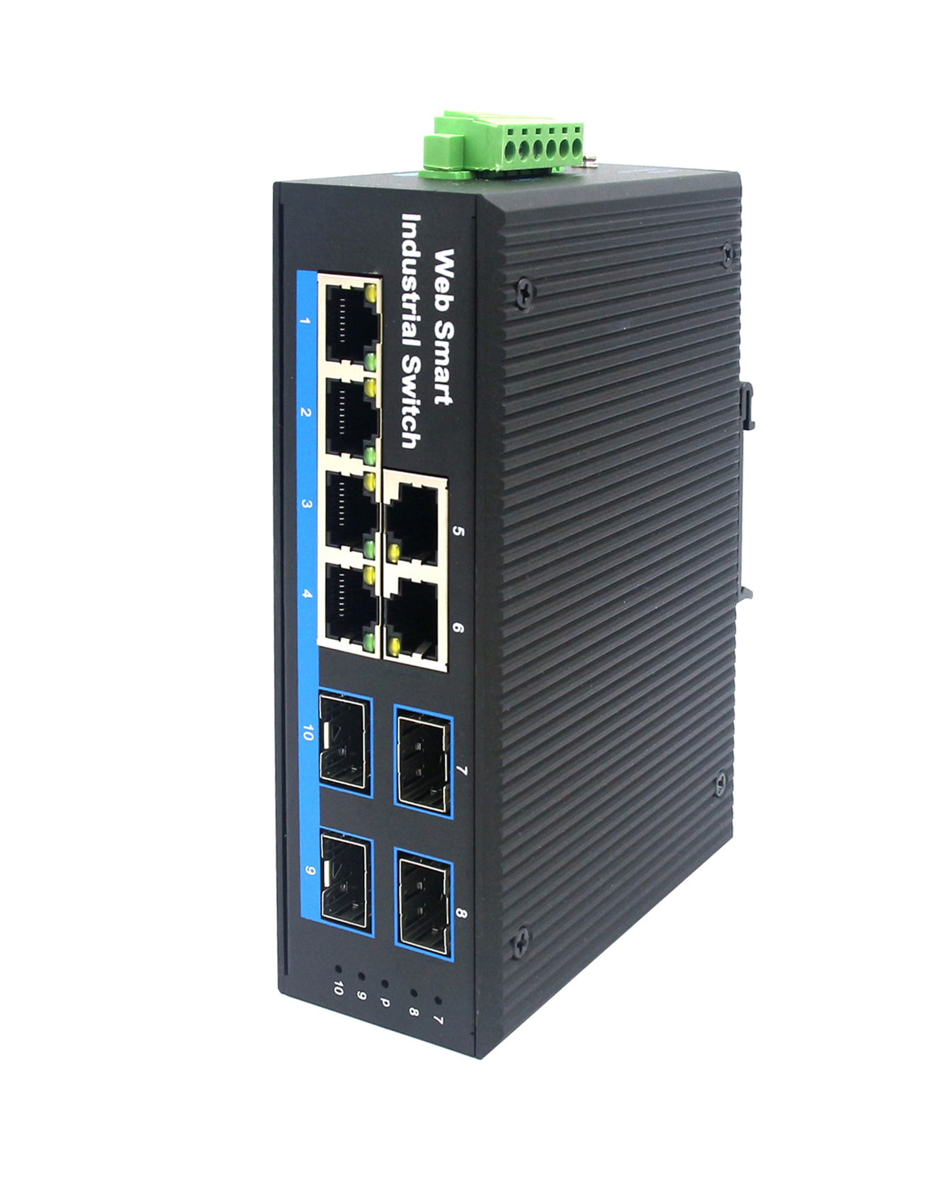 4個千兆光+6個千兆電、SFP接口(不含光模塊)、導(dǎo)軌式、DC12-52V供電-寬溫(-40℃-85℃) |