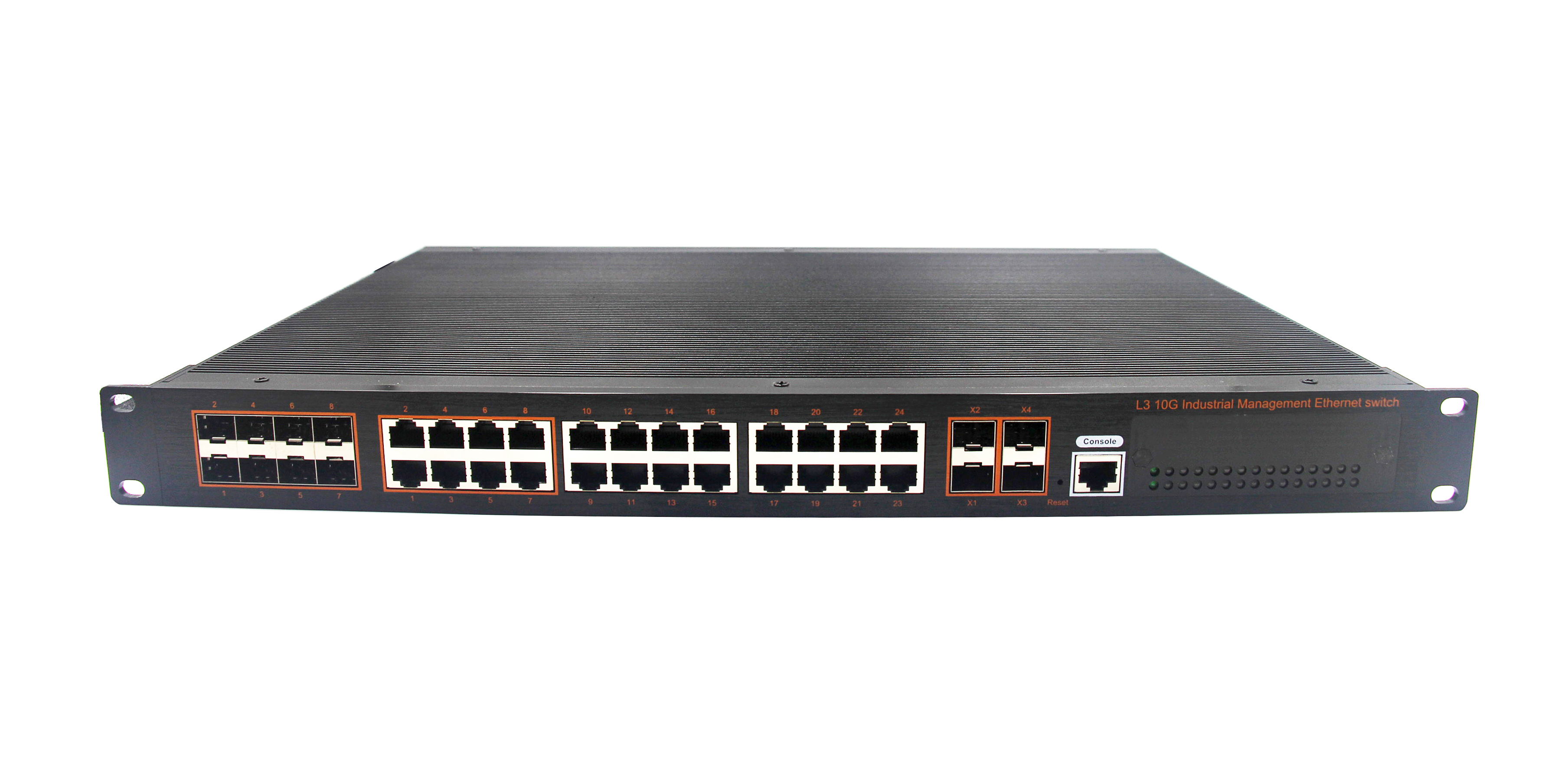 24千兆電+8千兆光+4個萬兆光萬兆網(wǎng)管型機(jī)架式工業(yè)匯聚交換機(jī) |