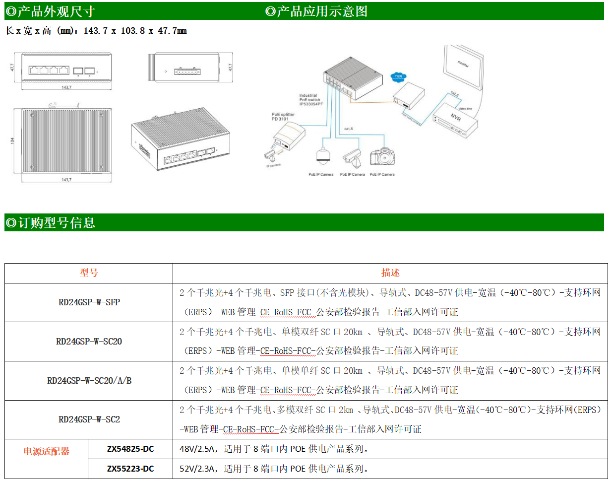 RD24GSP-W系列WEB管理工業(yè)級(jí)以太網(wǎng)PoE交換機(jī),產(chǎn)品符合FCC、CE、ROHS標(biāo)準(zhǔn),支持工業(yè)現(xiàn)場(chǎng)所需的以太網(wǎng)二層協(xié)議,保證通信網(wǎng)絡(luò)的穩(wěn)定性。該系列交換機(jī)采用低功耗、無(wú)風(fēng)扇設(shè)計(jì),確保無(wú)噪聲干擾,同時(shí)支持-40~80℃工作溫度和良好的EMC電磁兼容性能,保證在惡劣的工業(yè)環(huán)境中保持穩(wěn)定的工作,為工廠自動(dòng)化,智能交通,視頻監(jiān)控等工業(yè)應(yīng)用領(lǐng)域組建快速穩(wěn)定的網(wǎng)絡(luò)終端接入網(wǎng)絡(luò)提供安全可靠的解決方案。