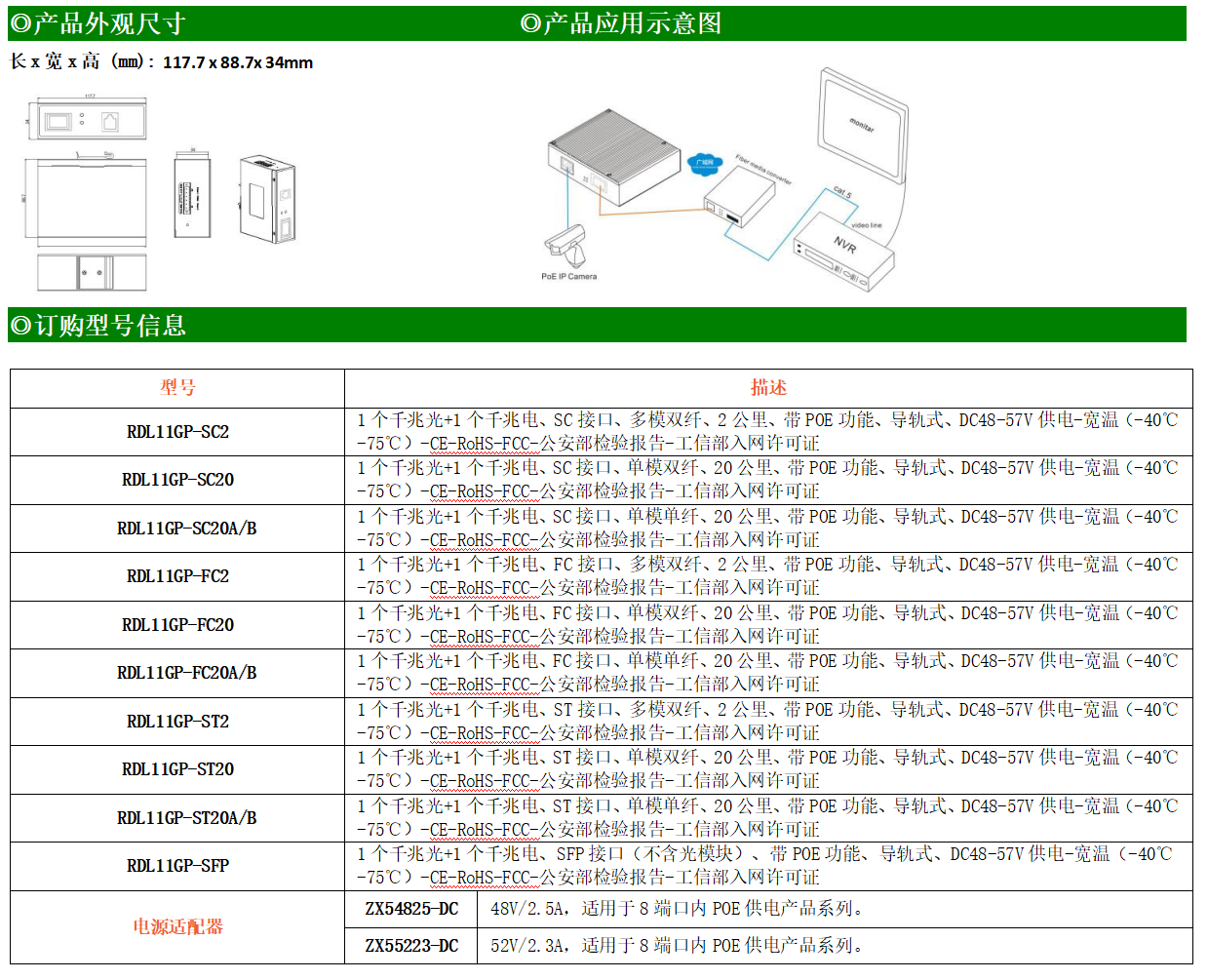 1路千兆POE電口+1路千兆FX光口工業級以太網POE交換機,支持1個10/100Base-TX電口和1個100Base-X光口。產品符合FCC、CE、ROHS標準。RDL11GP系列交換機具有-40℃~75℃的工作溫度,具有超強的堅固度能適應各種嚴苛環境,也可以非常方便的安置在空間緊湊的控制箱中。導軌的安裝特性、寬溫操作及擁有IP40防護等級的外殼及LED指示燈,使RDL11GP成為一個即插即用的工業級設備,為用戶的以太網設備聯網提供可靠、便捷的解決方案。