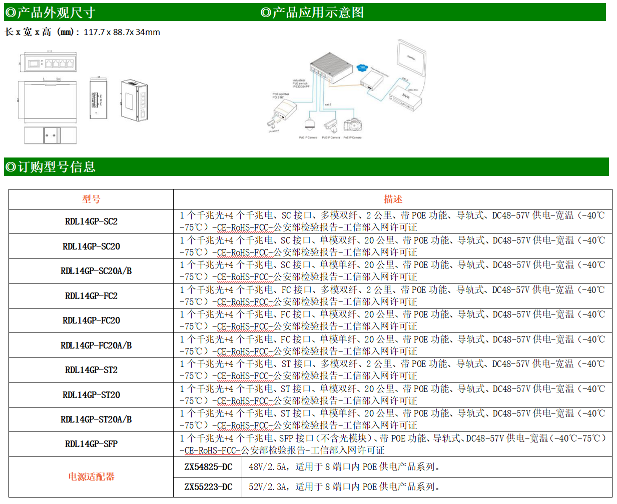 4路千兆POE電口+1路千兆FX光口工業(yè)級以太網(wǎng)POE交換機,支持4個10/100/1000Base-TX電口和1個1000Base-X光口。產(chǎn)品符合FCC、CE、ROHS標(biāo)準(zhǔn)。RDL14GP系列交換機具有-40℃~75℃的工作溫度,具有超強的堅固度能適應(yīng)各種嚴苛環(huán)境,也可以非常方便的安置在空間緊湊的控制箱中。導(dǎo)軌的安裝特性、寬溫操作及擁有IP40防護等級的外殼及LED指示燈,使RDL14GP成為一個即插即用的工業(yè)級設(shè)備,為用戶的以太網(wǎng)設(shè)備聯(lián)網(wǎng)提供可靠、便捷的解決方案。