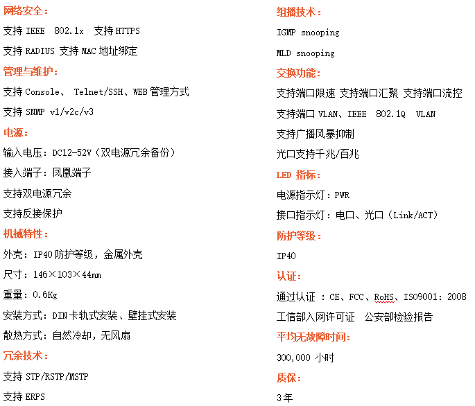 ●支持STP/RSTP/ERPS,SNMPv1/v2/v3,確保網(wǎng)絡(luò)安全