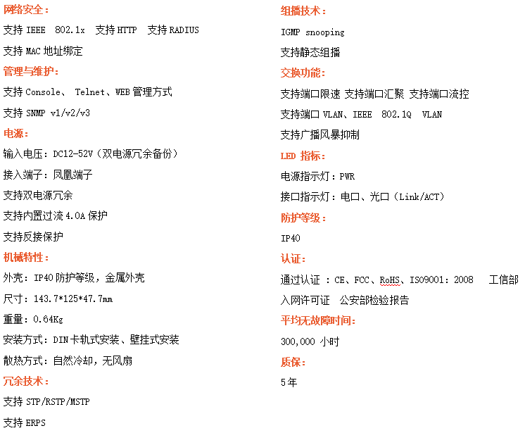 ●支持STP/RSTP/ERPS,SNMPv1/v2/v3,確保網(wǎng)絡(luò)安全