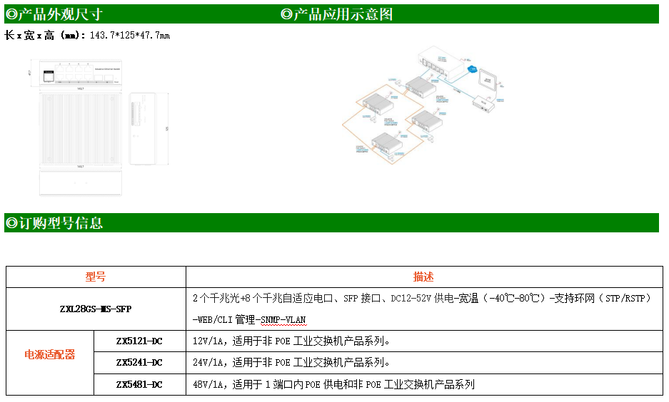 ZXL28GS-MS是網(wǎng)管型工業(yè)以太網(wǎng)交換機(jī),產(chǎn)品符合FCC、CE、RoHS標(biāo)準(zhǔn)。支持2個千兆光口和8個千兆電口;支持工業(yè)現(xiàn)場所需的以太網(wǎng)二層協(xié)議,保證通信網(wǎng)絡(luò)的穩(wěn)定性;該系列交換機(jī)采用低功耗、無風(fēng)扇設(shè)計,確保無噪聲干擾,同時支持-40~80℃工作溫度和良好的EMC電磁兼容性能,保證在惡劣的工業(yè)環(huán)境中保持穩(wěn)定的工作,為工廠自動化,智能交通,視頻監(jiān)控等工業(yè)應(yīng)用領(lǐng)域組建快速穩(wěn)定的網(wǎng)絡(luò)終端接入網(wǎng)絡(luò)提供安全可靠的解決方案。