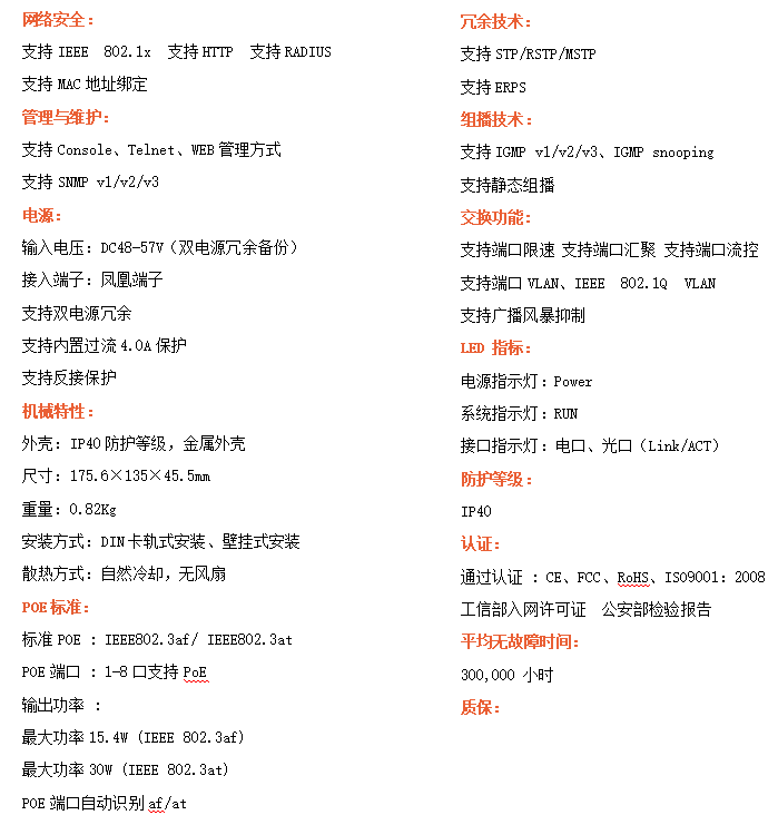 ●管理功能:支持WEB、SNMP管理方式