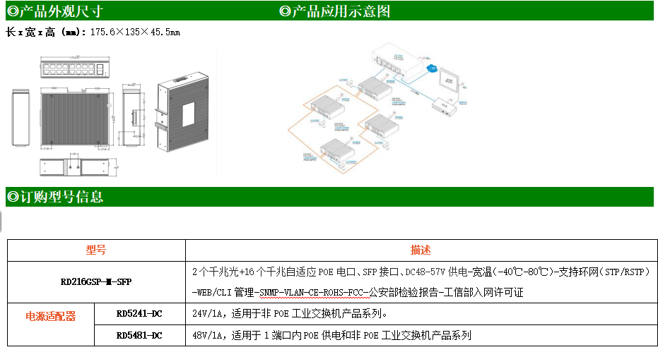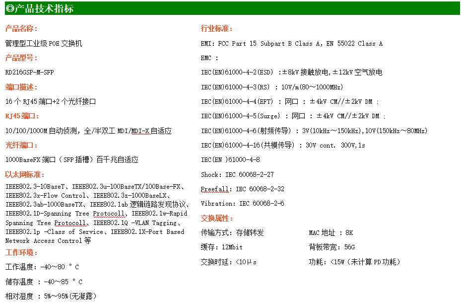 RD216GSP-M是網(wǎng)管型工業(yè)以太網(wǎng)POE交換機,產(chǎn)品符合FCC、CE、RoHS標準。支持2個千兆光口和16個千兆POE電口;支持工業(yè)現(xiàn)場所需的以太網(wǎng)二層協(xié)議,保證通信網(wǎng)絡(luò)的穩(wěn)定性;該系列交換機采用低功耗、無風(fēng)扇設(shè)計,確保無噪聲干擾,同時支持-40~80℃工作溫度和良好的EMC電磁兼容性能,保證在惡劣的工業(yè)環(huán)境中保持穩(wěn)定的工作,為工廠自動化,智能交通,視頻監(jiān)控等工業(yè)應(yīng)用領(lǐng)域組建快速穩(wěn)定的網(wǎng)絡(luò)終端接入網(wǎng)絡(luò)提供安全可靠的解決方案。