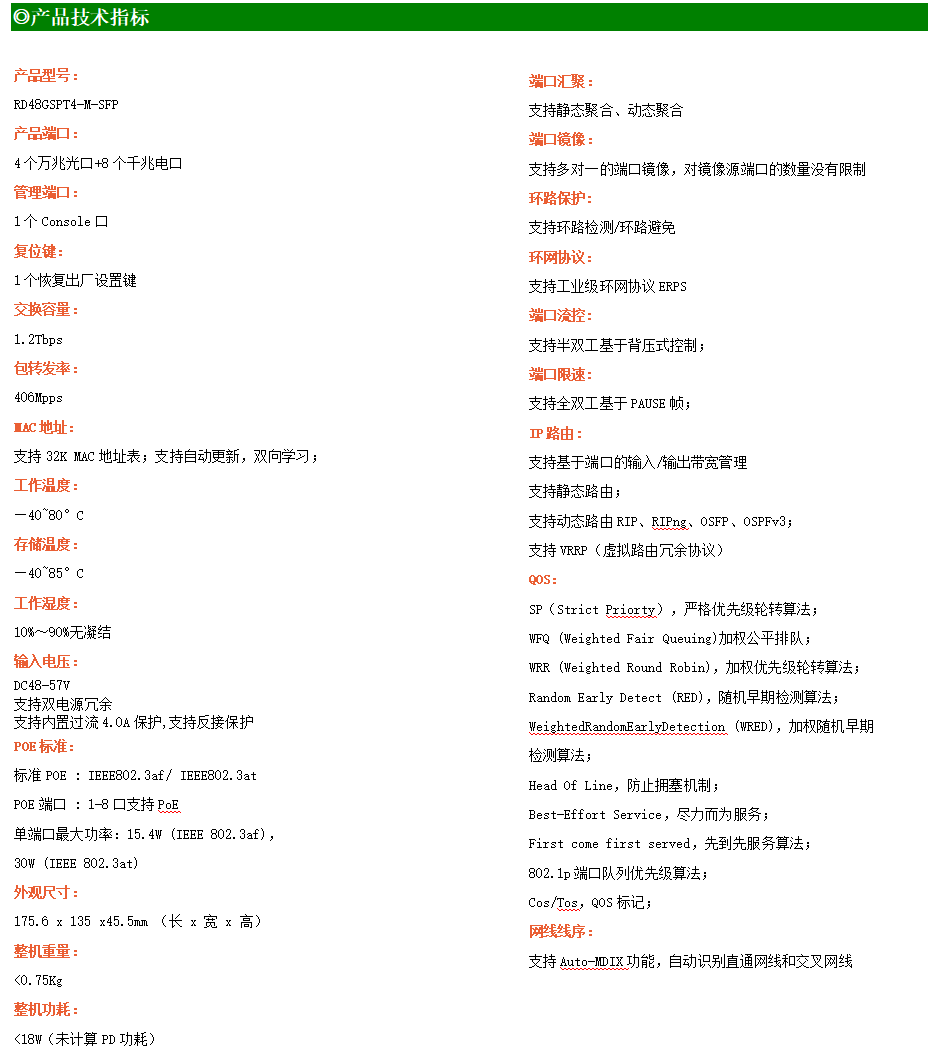 ●網絡冗余:支持STP/RSTP/MSTP,支持ERPS(自愈時間<20ms)