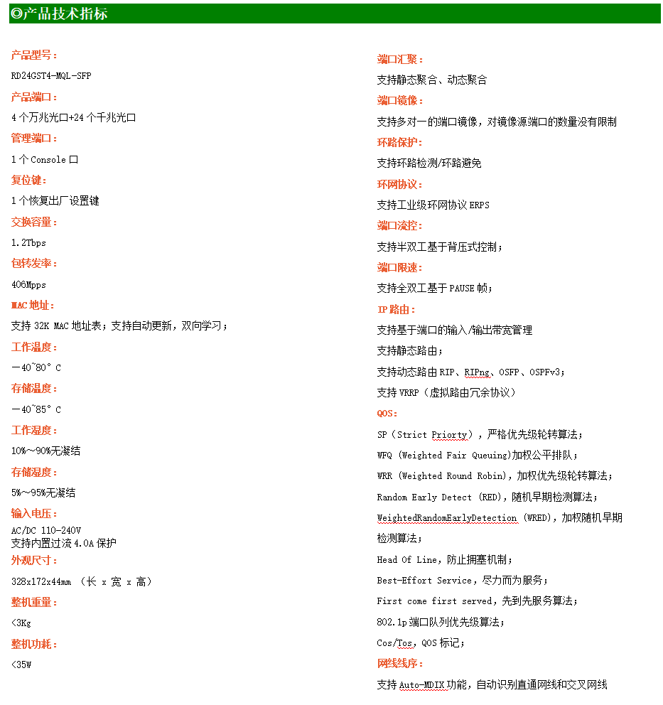 ●網(wǎng)絡(luò)冗余:支持STP/RSTP/MSTP,支持ERPS(自愈時(shí)間<20ms)