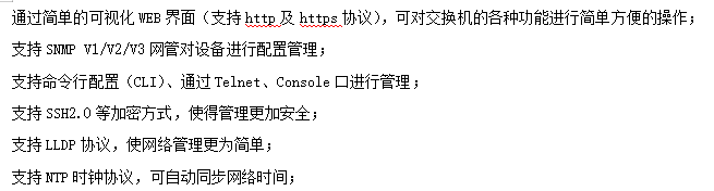●管理功能:支持WEB、CLI、SNMP等多種管理方式