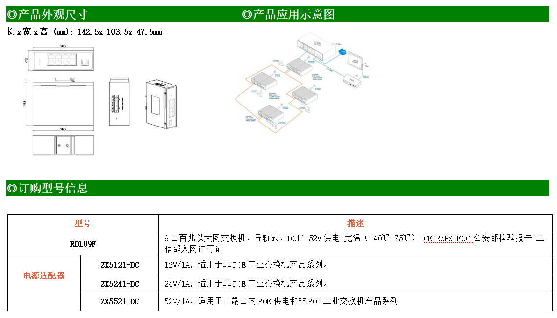 9路百兆電口工業(yè)級(jí)以太網(wǎng)交換機(jī),支持9個(gè)10Base-T/100Base-TX電口。產(chǎn)品符合FCC、CE、ROHS標(biāo)準(zhǔn)。RDL09F交換機(jī)具有-40℃~75℃的工作溫度,具有超強(qiáng)的堅(jiān)固度能適應(yīng)各種嚴(yán)苛環(huán)境,也可以非常方便的安置在空間緊湊的控制箱中。導(dǎo)軌的安裝特性、寬溫操作及擁有IP40防護(hù)等級(jí)的外殼及LED指示燈,使RDL09F成為一個(gè)即插即用的工業(yè)級(jí)設(shè)備,為用戶(hù)的以太網(wǎng)設(shè)備聯(lián)網(wǎng)提供可靠、便捷的解決方案。