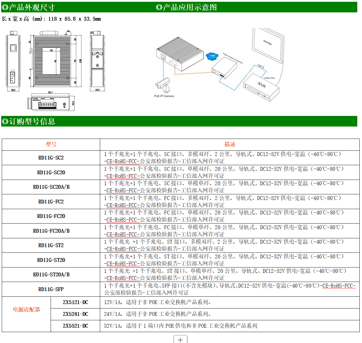 1路千兆電口+1路千兆FX光口工業(yè)級以太網交換機,支持1個10Base-T/100Base-T/1000Base-TX電口和1個1000Base-X光口。產品符合FCC、CE、ROHS標準。RD11G系列交換機具有-40℃~80℃的工作溫度,具有超強的堅固度能適應各種嚴苛環(huán)境,也可以非常方便的安置在空間緊湊的控制箱中。導軌的安裝特性、寬溫操作及擁有IP40防護等級的外殼及LED指示燈,使RD11G成為一個即插即用的工業(yè)級設備,為用戶的以太網設備聯(lián)網提供可靠、便捷的解決方案。