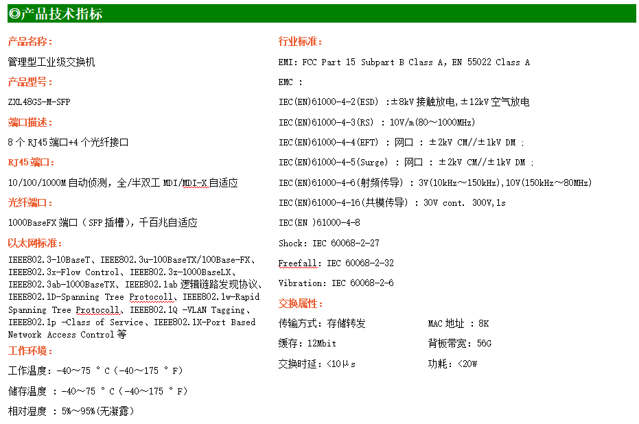 ZXL48GS-M-SFP是網(wǎng)管型工業(yè)以太網(wǎng)交換機(jī),產(chǎn)品符合FCC、CE、RoHS標(biāo)準(zhǔn)。支持4個(gè)千兆光口和8個(gè)千兆電口;支持工業(yè)現(xiàn)場所需的以太網(wǎng)二層協(xié)議,保證通信網(wǎng)絡(luò)的穩(wěn)定性;該系列交換機(jī)采用低功耗、無風(fēng)扇設(shè)計(jì),確保無噪聲干擾,同時(shí)支持-40~75℃工作溫度和良好的EMC電磁兼容性能,保證在惡劣的工業(yè)環(huán)境中保持穩(wěn)定的工作,為工廠自動(dòng)化,智能交通,視頻監(jiān)控等工業(yè)應(yīng)用領(lǐng)域組建快速穩(wěn)定的網(wǎng)絡(luò)終端接入網(wǎng)絡(luò)提供安全可靠的解決方案。