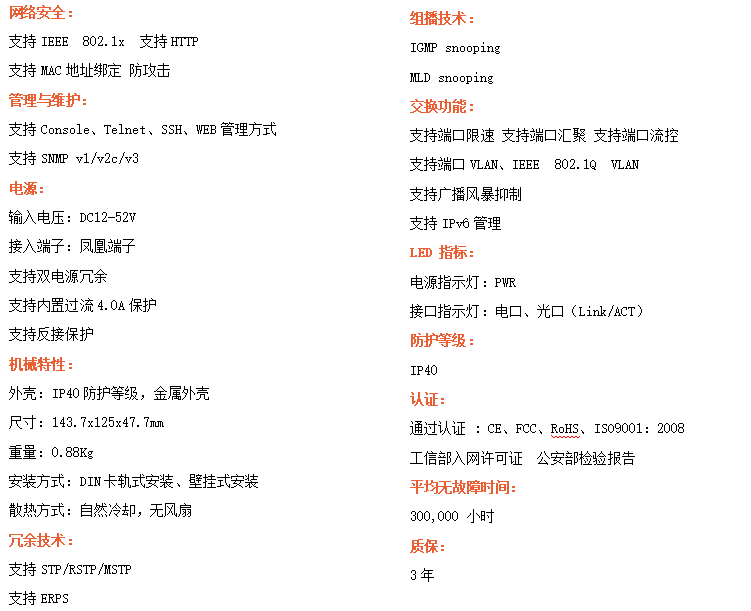 ●管理功能:支持WEB、CLI、SNMP管理方式